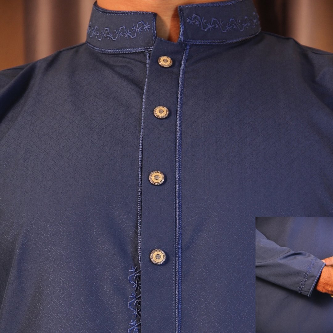 Navy Pakistani Jacquard Panjabi