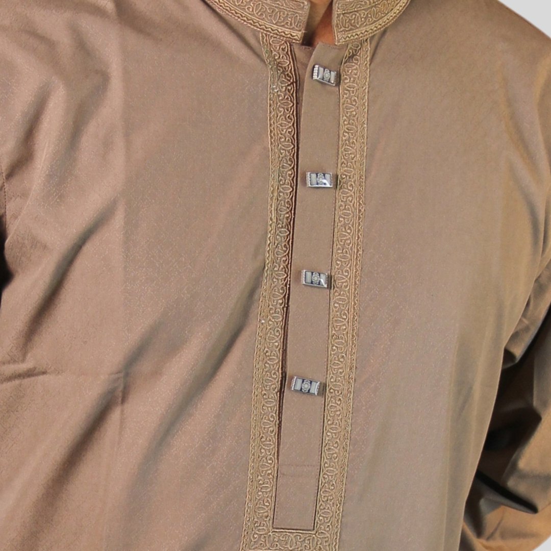 Light Brown Pakistani Jackquard Panjabi