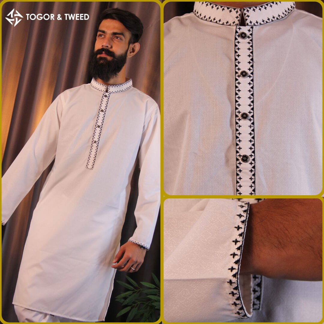 Elevate your style with Togor & Tweed’s Pakistani Jacquard Panjabi. Premium fabric, intricate design, and tailored comfort—perfect for festive and formal wear.