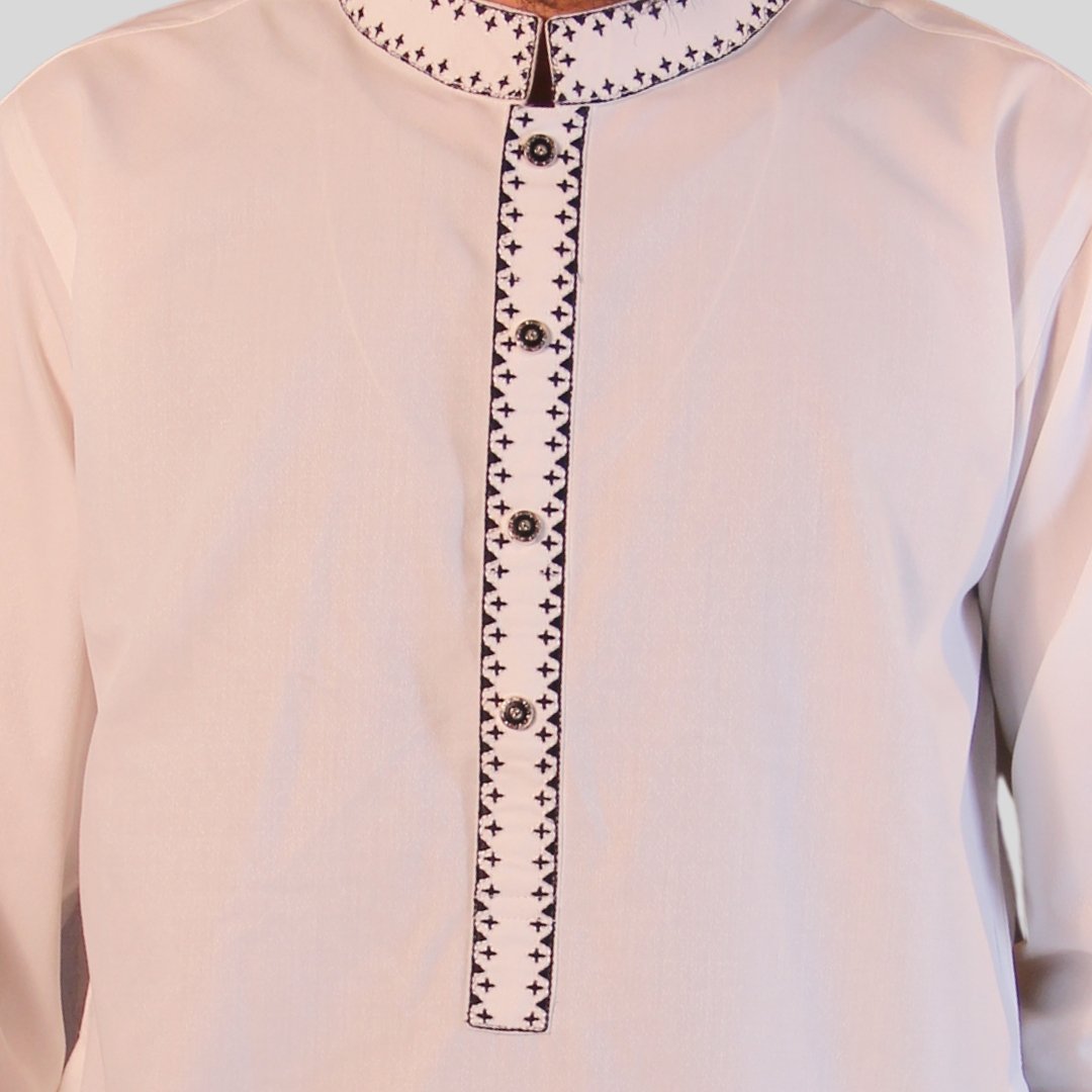 Light Beige Pakistani Jacquard Panjabi